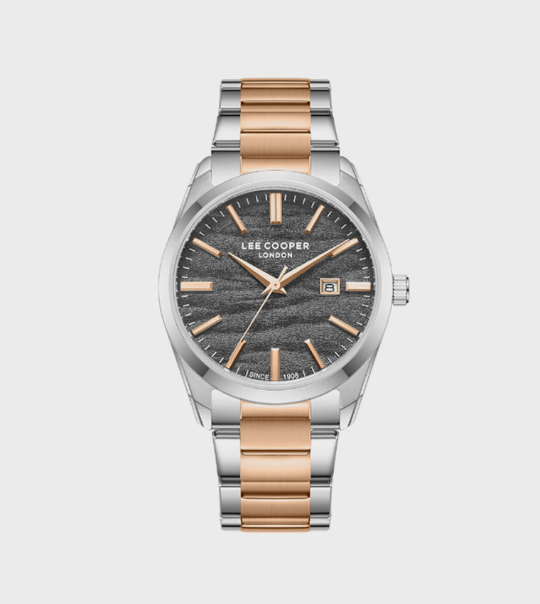 שעון גבר אלגנטי ומרשים מבית Lee Cooper London, עם לוח כחול עמוק בשילוב לוחות משנה כסופים וגוף נירוסטה מבריק. עיצוב מודרני עם נגיעות זהב אדום (Rose-Gold) שמעניק לשעון נוכחות יוקרתית ומתוחכמת — אידיאלי לשימוש יום־יומי וגם להופעה רשמית.